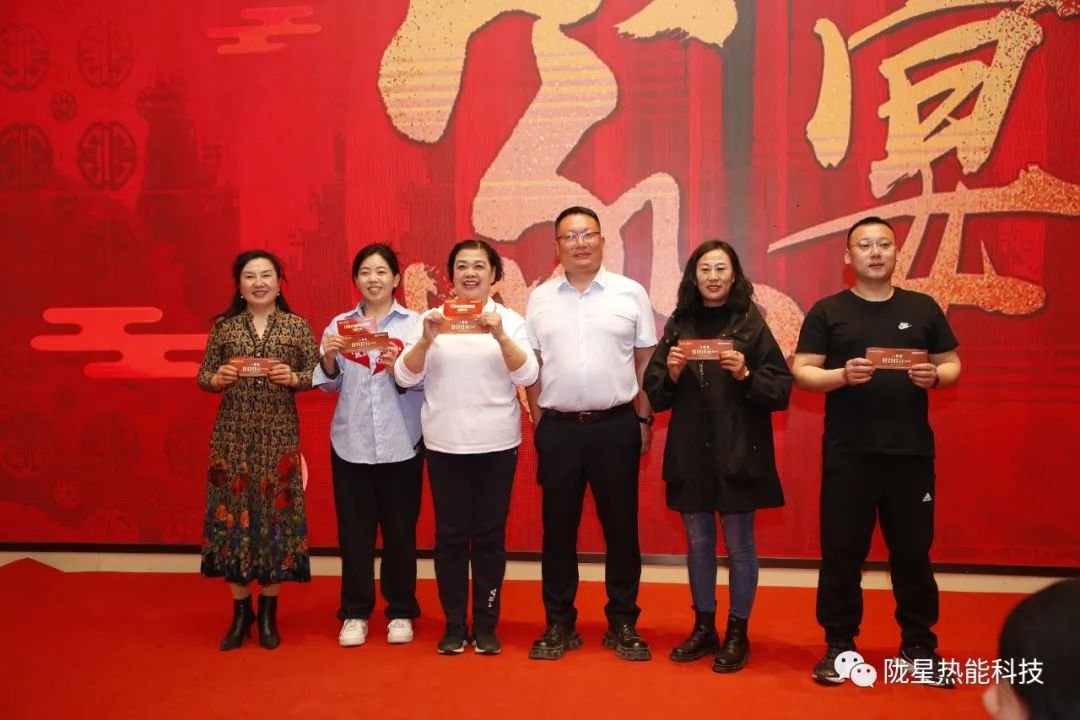 隴星集團(tuán)董事長(zhǎng)吳愛華女士、總經(jīng)理吳茂原先生出席了此次盛會(huì)。出席會(huì)議的還有隴星集團(tuán)副總、隴星熱能科技公司總經(jīng)理趙明珠先生,集團(tuán)副總黃巖先生,集團(tuán)副總、隴星熱能科技公司工廠廠長(zhǎng)李克林先生等集團(tuán)領(lǐng)導(dǎo)及公司領(lǐng)導(dǎo),會(huì)議現(xiàn)場(chǎng)200余人,共襄盛會(huì)。會(huì)議由公司副總經(jīng)理、銷售公司總經(jīng)理劉靜先生負(fù)責(zé)主持。