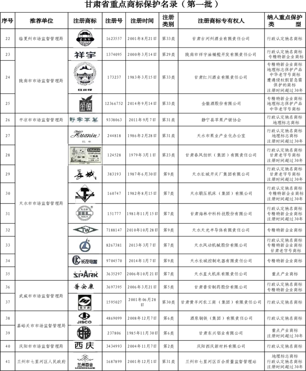 隴星成功入選甘肅省重點商標(biāo)保護名錄(第一批),這是甘肅省政府部門對隴星集團二十多年來在品牌建設(shè)、市場推廣、質(zhì)量保證、用戶服務(wù)等方面不懈努力的高度肯定,強化了對隴星商標(biāo)品牌的保護。