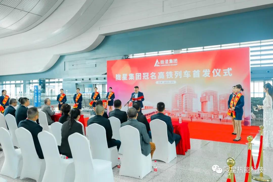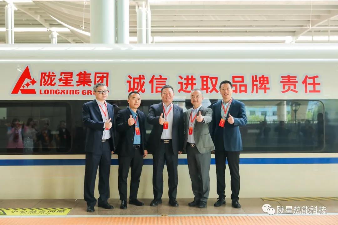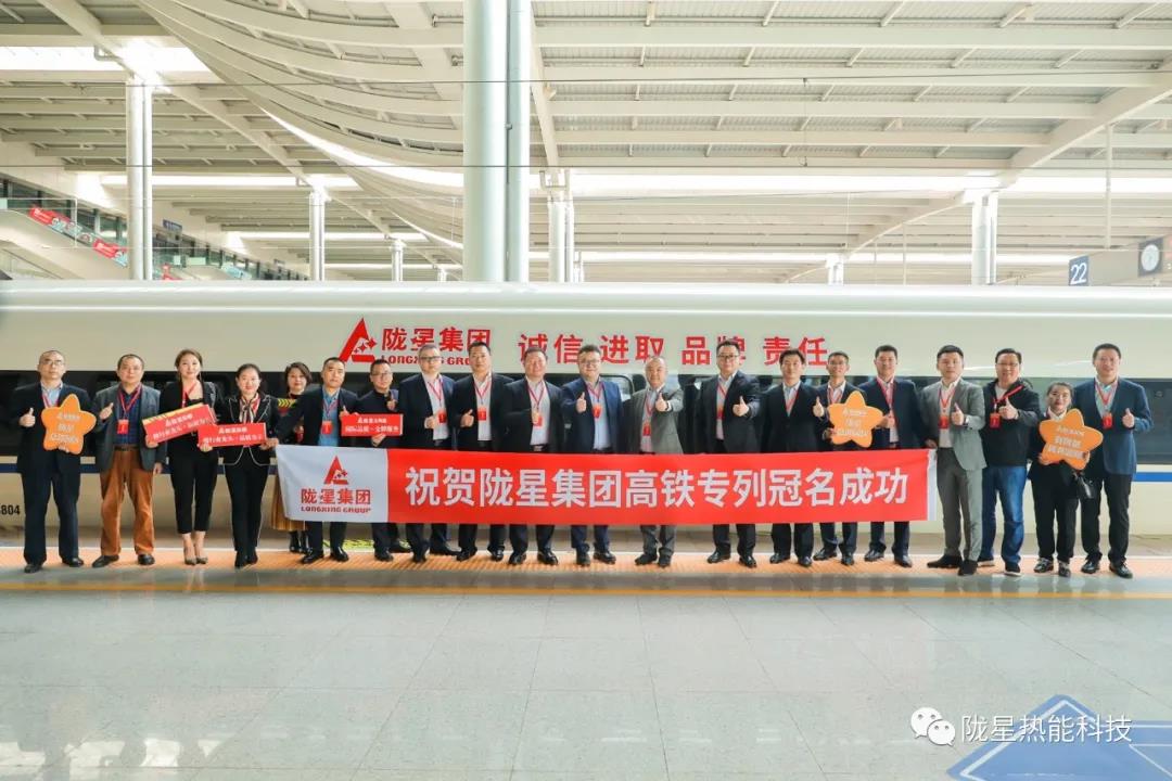 在首發(fā)儀式工作人員的引導(dǎo)下,出席隴星集團(tuán)高鐵冠名首發(fā)儀式的領(lǐng)導(dǎo)及嘉賓來到了隴星集團(tuán)高鐵冠名列車所在的站臺(tái)。主持人邀請(qǐng)隴星集團(tuán)副總、隴星熱能科技公司總經(jīng)理趙明珠先生與華鐵傳媒集團(tuán)副總裁杜勁松先生,以及隴星熱能科技公司三位員工代表共同為隴星集團(tuán)的高鐵冠名列車揭幕,現(xiàn)場(chǎng)響起了熱烈的掌聲,站臺(tái)上來來往往的乘客也駐足觀看,高鐵列車上紅色的隴星集團(tuán)LOGO及隴星企業(yè)精神八個(gè)大字格外引人注目。